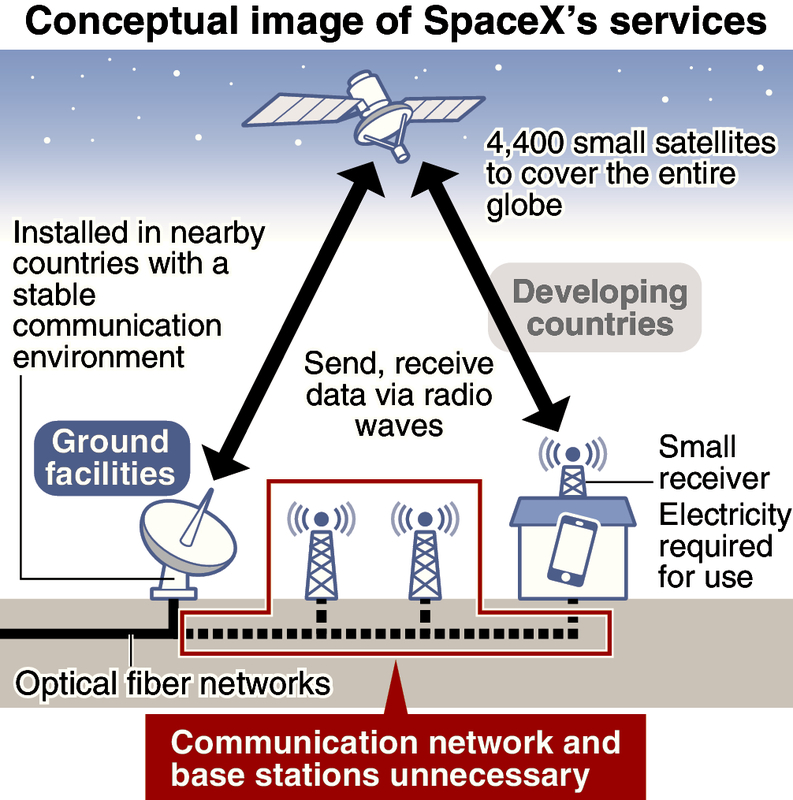 Japanese companies have likewise entered this field. SoftBank Corp. in May agreed on a business tie-up with OneWeb LLC, a U.K. satellite communications company in which its parent firm SoftBank Group has invested. OneWeb has successfully put over 180 satellites into orbit, and SoftBank plans to start providing its service in some parts of the world this year.