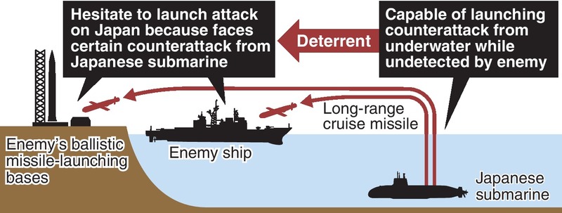 Maritime Self-Defense Force submarines may soon be equipped with long-range cruise missiles capable of striking ground-based targets, The Yomiuri Shimbun has learned.