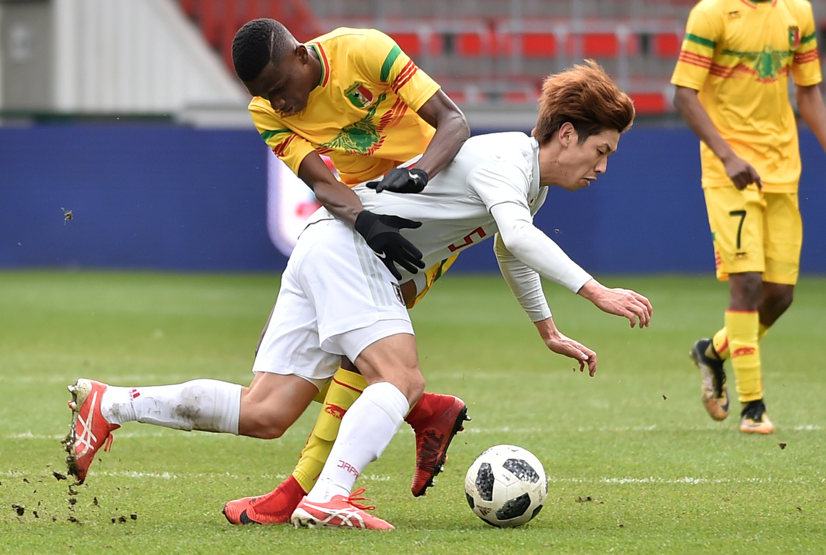 Soccer Football - International Friendly - Kirin Challenge Cup 2018 - Japan vs Mali - Stadium Maurice Dufrasne, Liege, Belgium - March 23, 2018 Japan’s Yuya Osako in action with Mali’s Mamadou Fofana REUTERS/Eric Vidal