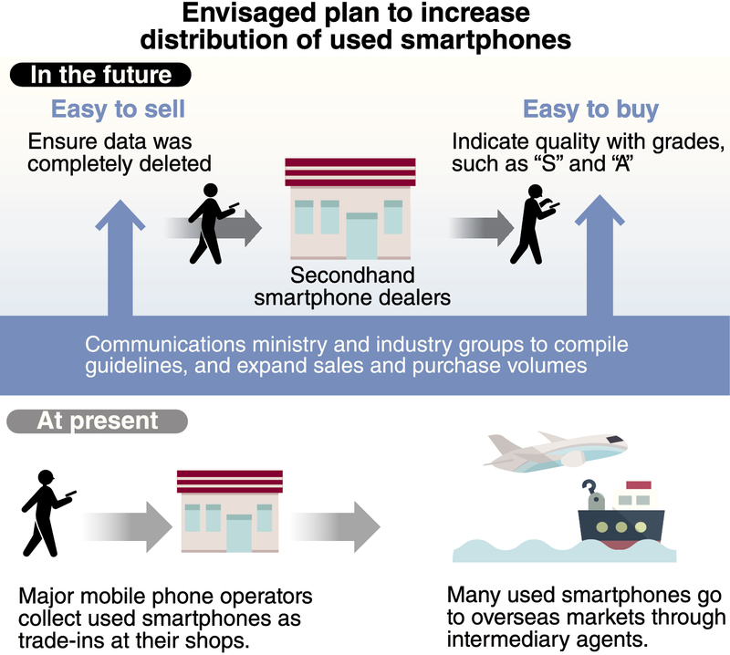 The communications ministry and the used smartphone industry are considering a system for ranking used smartphones so that consumers will be able to determine their quality and more easily purchase them, The Yomiuri Shimbun has learned. The effort is aimed at expanding the distribution of secondhand smartphones.