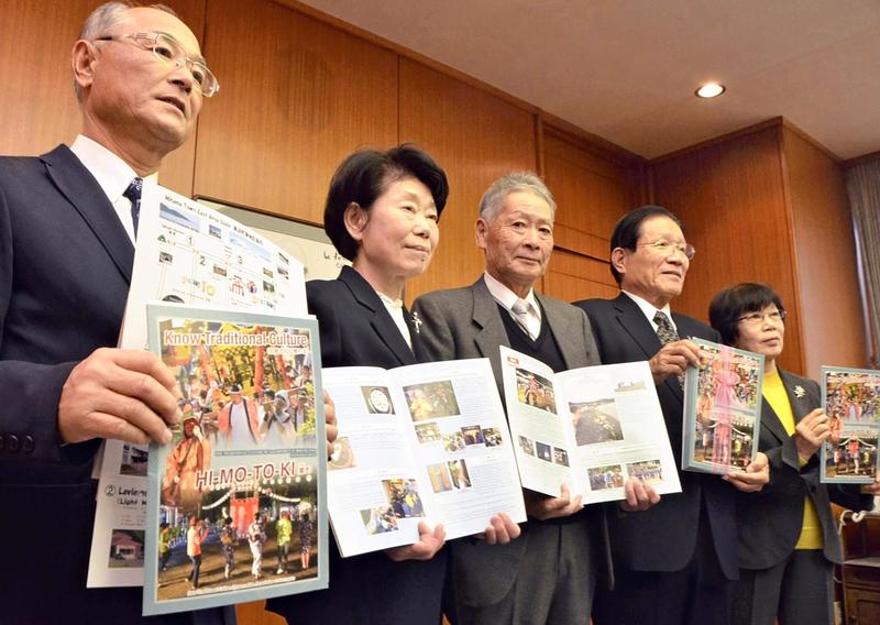 The Sata Traditional Culture Preservation Association said it hopes the bilingual brochure will get foreign tourists interested in local traditional culture and contribute to the vitalization of communities in the Sata area. The association was established in 2013 by local residents because Sutena Odori, a local version of Bon festival dancing, was at risk of being discontinued.