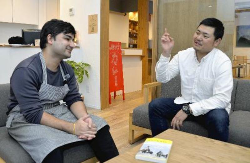 Manager Shohei Morita, 27, who also cooks, serves Western cuisine using local seafood and guides foreigners around the area.