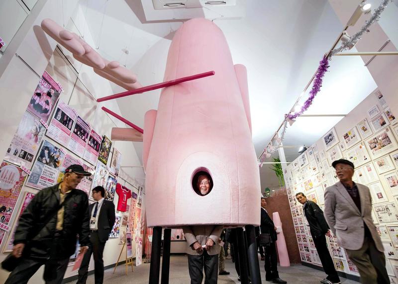 The pink of the new ginger is the central color throughout the museum, which has free admission. A playfulness abounds, whether it be from the five-meter high new ginger "headgear," or the Ginger Shrine, which in Japanese is "jinja jinja," a play on words using the Japanese pronunciation of "ginger" and the word for shrine. Also on display are illustrations of characters sent in by fans of the new ginger.