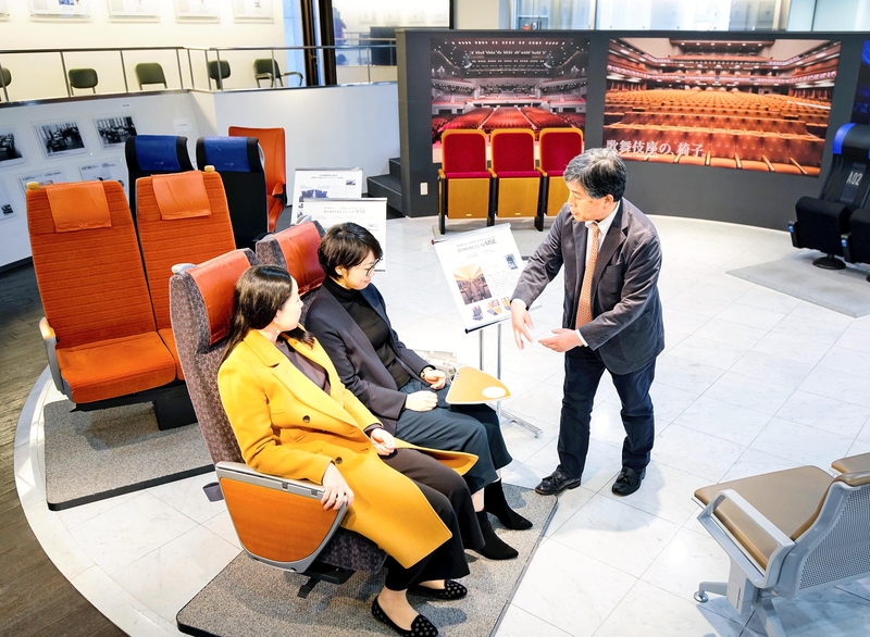 About 40 chairs are on display in the exhibition area on the eighth floor, ranging from those sold in the 1950s, when Okamura was still a young company, to the latest models. Visitors can even sit in them.