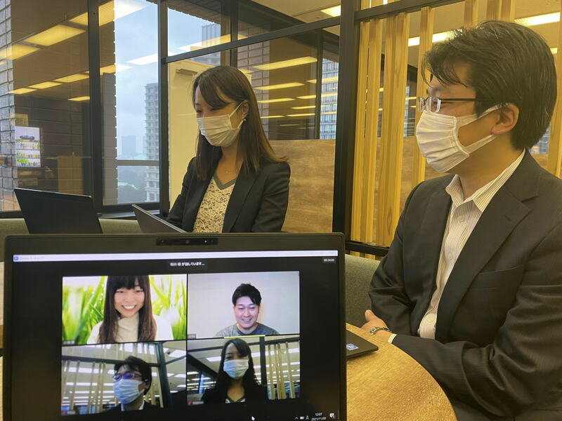 As the spread of infections has subsided, employees of the company could choose whether to commute or telework. Since late October, the number of employees working at the company's head office in Tokyo has increased. It has also become a common sight in the company for teleworkers to have videoconferences with employees who are in the office.