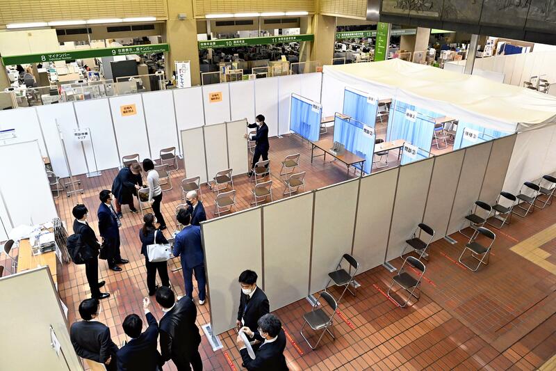 In Hachioji, Tokyo, where the implementation of emergency-level priority measures began Monday, vaccinations started at 9 a.m. at a special venue set up for Hachioji residents on the first floor of city hall. Recipients made reservations on a first-come, first-served basis.