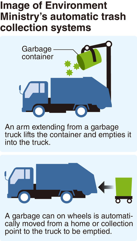 The system the ministry aims to develop envisions installing large trash containers that are shared among multiple residents at a collection point. An arm extending from the garbage truck would pick up the entire container and dump its contents into the truck.