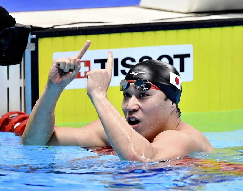 JAKARTA -- Japan again battled fiercely with China in swimming events on Wednesday at the Asian Games in Jakarta, eventually adding four golds to its medal haul, while China picked up three.