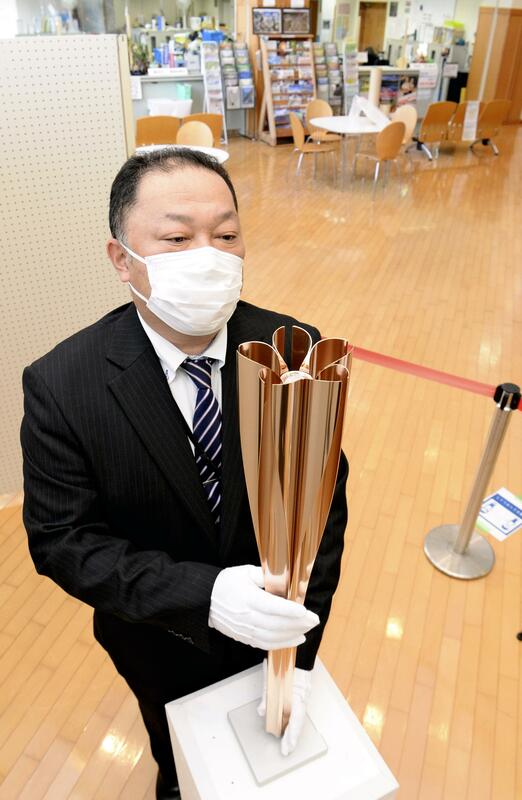 As Monday marked 200 days until the start of the Tokyo Olympics in July, a torch to be used in the relay was put on display in the lobby of the municipal government building in Nambu, Yamanashi Prefecture.
