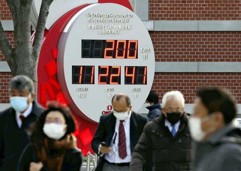 The countdown clock in front of JR Tokyo Station read "200 days" on Monday.
