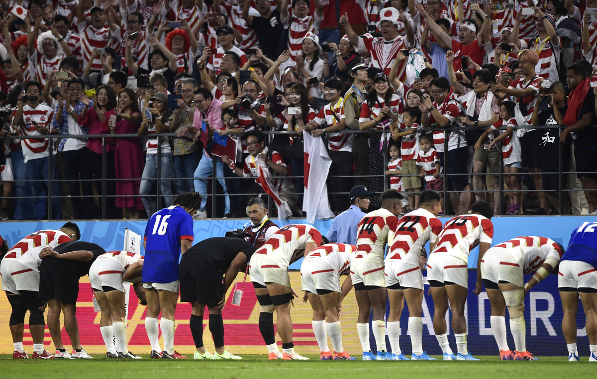 Number eight Kazuki Himeno, centre Timothy Lafaele and winger Kenki Fukuoka also scored tries for Japan, while flyhalf Yu Tamura added 18 points with the boot in front of a passionate crowd of just under 40,000.