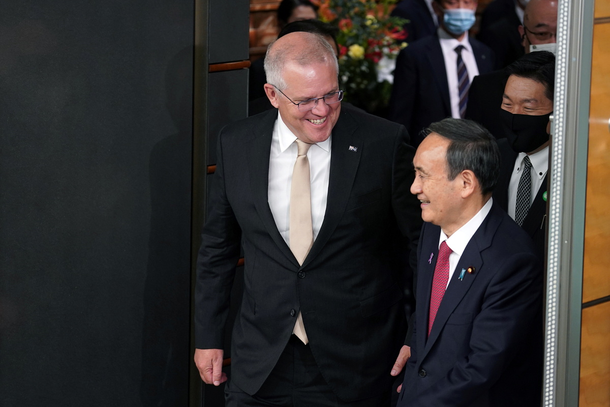 Japanese Prime Minister Yoshihide Suga told his Australian counterpart Scott Morrison he would like to further cooperate with Australia to push for a free and open Indo-Pacific region.