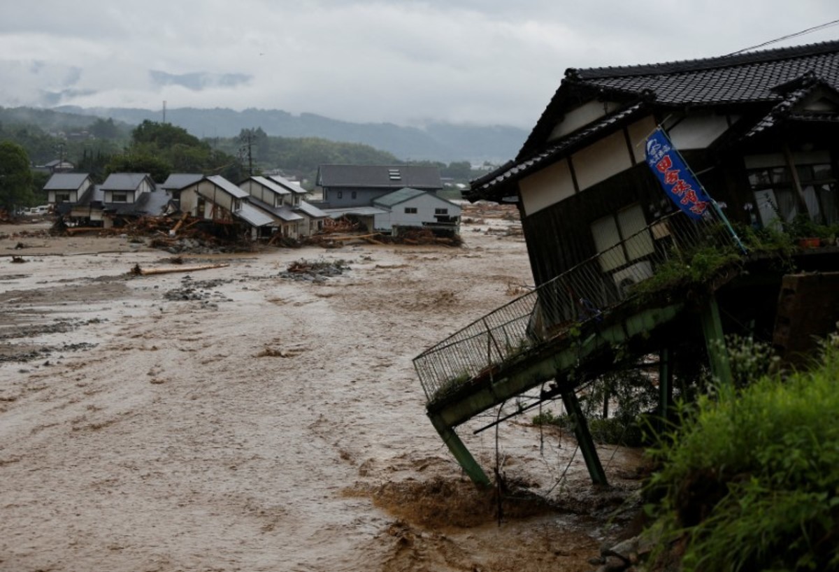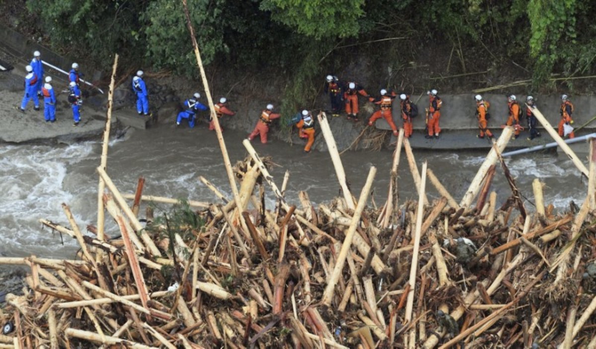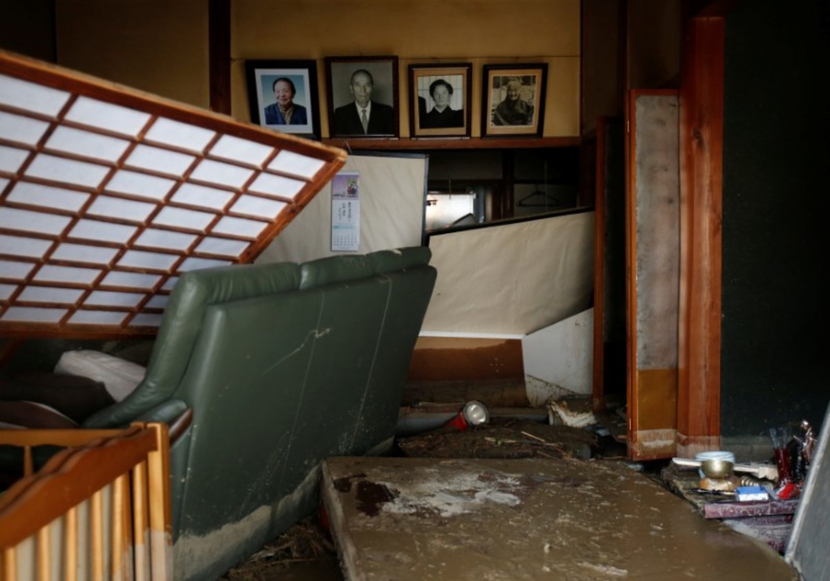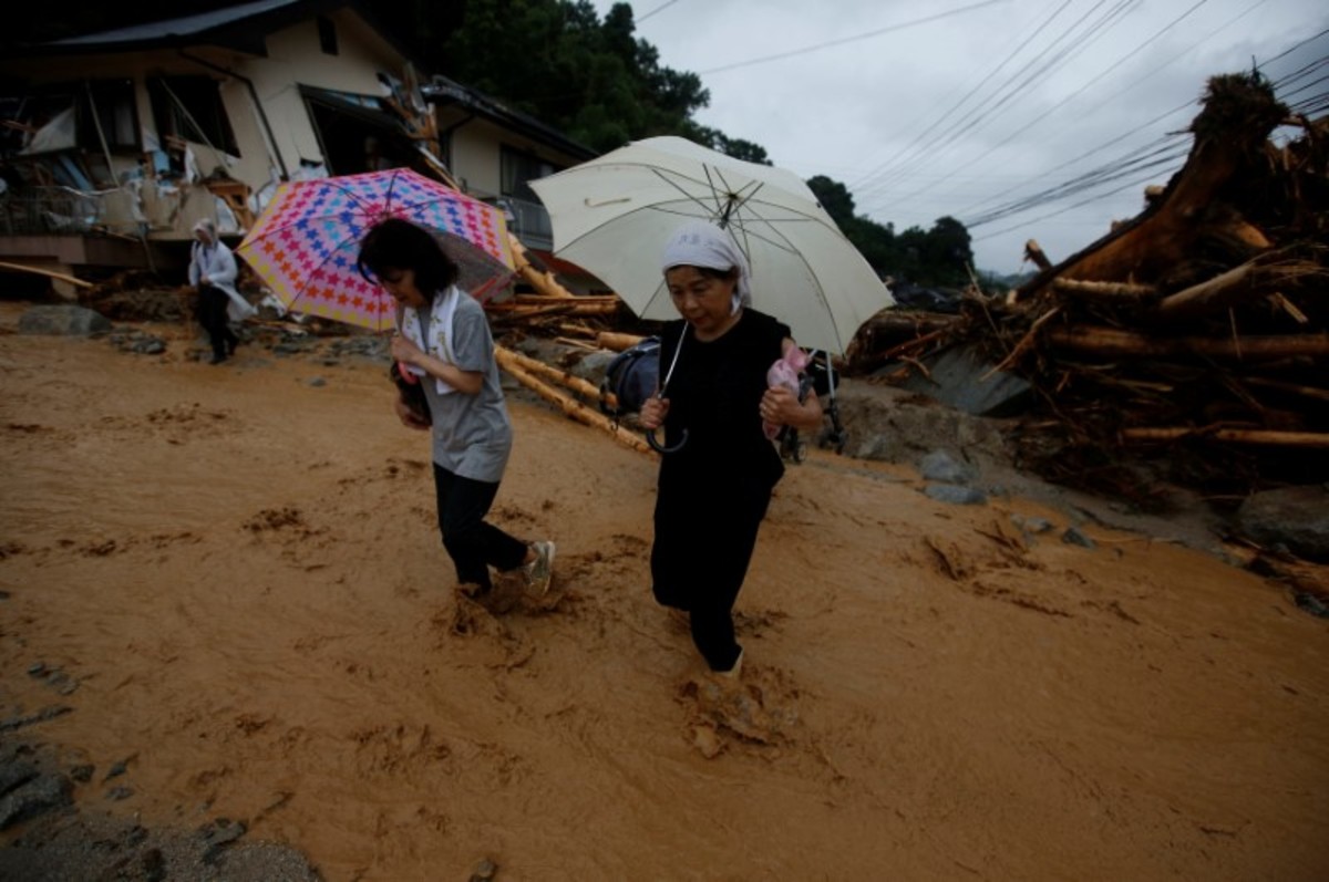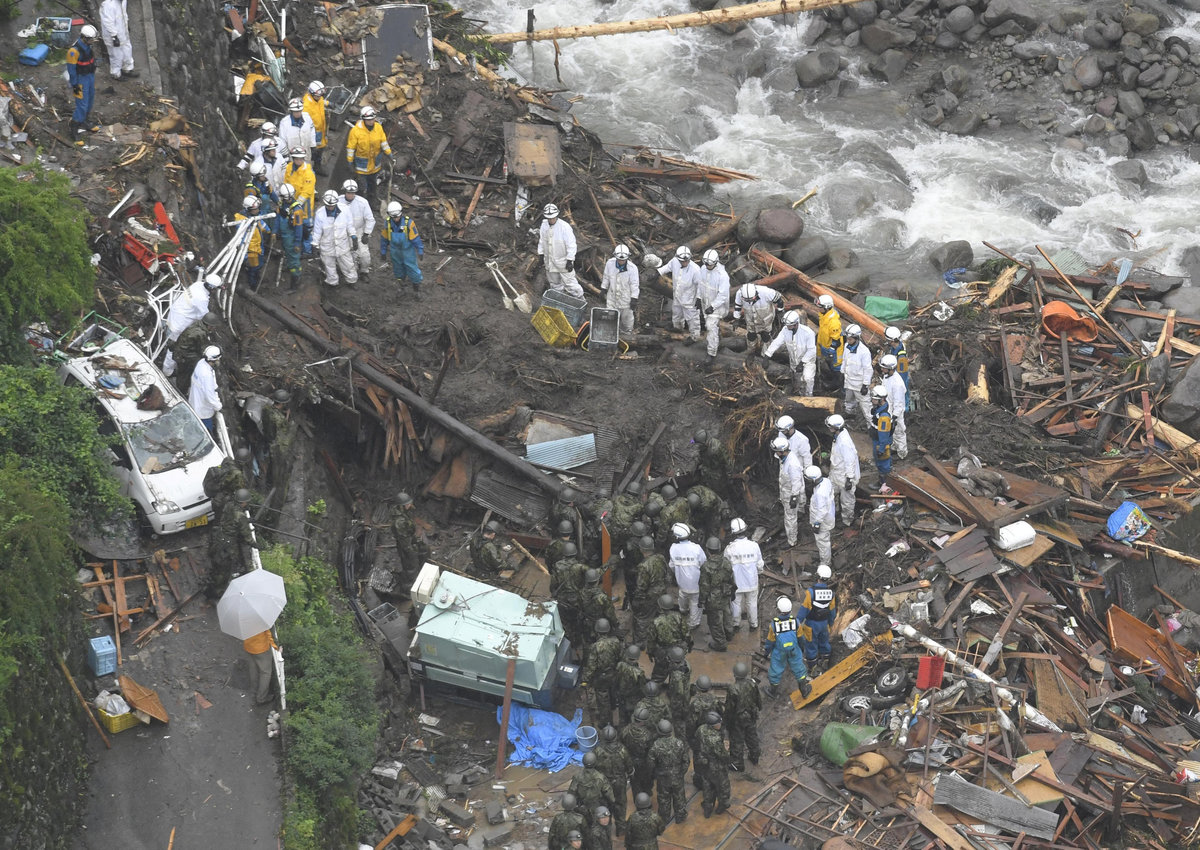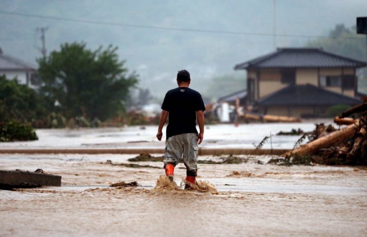 Damage vehicles are seen at an area hit by heavy rain at Haki district in Asakura, Fukuoka Prefecture, Japan July 7, 2017. REUTERS/Issei KatoLocal residents walk past a soccer goalpost surrounded by debris and mud which were swept by heavy rain at the playground of Masue elementary school, where local residents were temporary evacuated to, at Haki district in Asakura, Fukuoka Prefecture, Japan July 7, 2017. REUTERS/Issei KatoFamily portraits are displayed inside destroyed houses at an area hit by heavy rain at Haki district in Asakura, Fukuoka Prefecture, Japan July 7, 2017. REUTERS/Issei KatoDebris which were swept by heavy rain are seen inside a gymnasium at Masue elementary school, where local residents were temporary evacuated to, at Haki district in Asakura, Fukuoka Prefecture, Japan July 7, 2017. REUTERS/Issei KatoDamaged cars are seen at Masue elementary school, where local residents were temporary evacuated to, at an area hit by heavy rain at Haki district in Asakura, Fukuoka Prefecture, Japan July 7, 2017. REUTERS/Issei KatoA page from a student yearbook, which is stained with mud, is seen at an area hit by heavy rain at Haki district in Asakura, Fukuoka Prefecture, Japan July 7, 2017. REUTERS/Issei KatoA rescue worker walks on wooden debris which were swept away caused by heavy rain as rescue workers search missing people near a damages house at Yamada district in Asakura, Fukuoka Prefecture, Japan July 7, 2017. REUTERS/Issei KatoA local resident walks in an area damaged by swollen river after heavy rain in Asakura, Fukuoka Prefecture, Japan. REUTERS/Issei KatoLocal residents react as they watch search and rescue operation by rescue workers in front of their damaged house at Yamada district in Asakura, Fukuoka Prefecture, Japan July 7, 2017. REUTERS/Issei KatoA police officer conducts search and rescue operation in the rain at an area hit by heavy rain at Yamada district in Asakura, Fukuoka Prefecture, Japan July 7, 2017. REUTERS/Issei KatoLocal residents try to remove their belongings from their damaged house at an area hit by heavy rain at Yamada district in Asakura, Fukuoka Prefecture, Japan July 7, 2017. REUTERS/Issei KatoRescue workers conduct search and rescue operation in the heavy rain near a damaged house at an area hit by heavy rain at Yamada district in Asakura, Fukuoka Prefecture, Japan July 7, 2017. REUTERS/Issei KatoA rescue worker walks on wooden debris which were swept away by heavy rain as rescue workers search for missing people near a damaged house at Yamada district in Asakura, Fukuoka Prefecture, Japan July 7, 2017. REUTERS/Issei KatoA local resident walks on wooden debris which were swept away by heavy rain as rescue workers search for missing people near a damaged house at Yamada district in Asakura, Fukuoka Prefecture, Japan July 7, 2017. REUTERS/Issei Kato