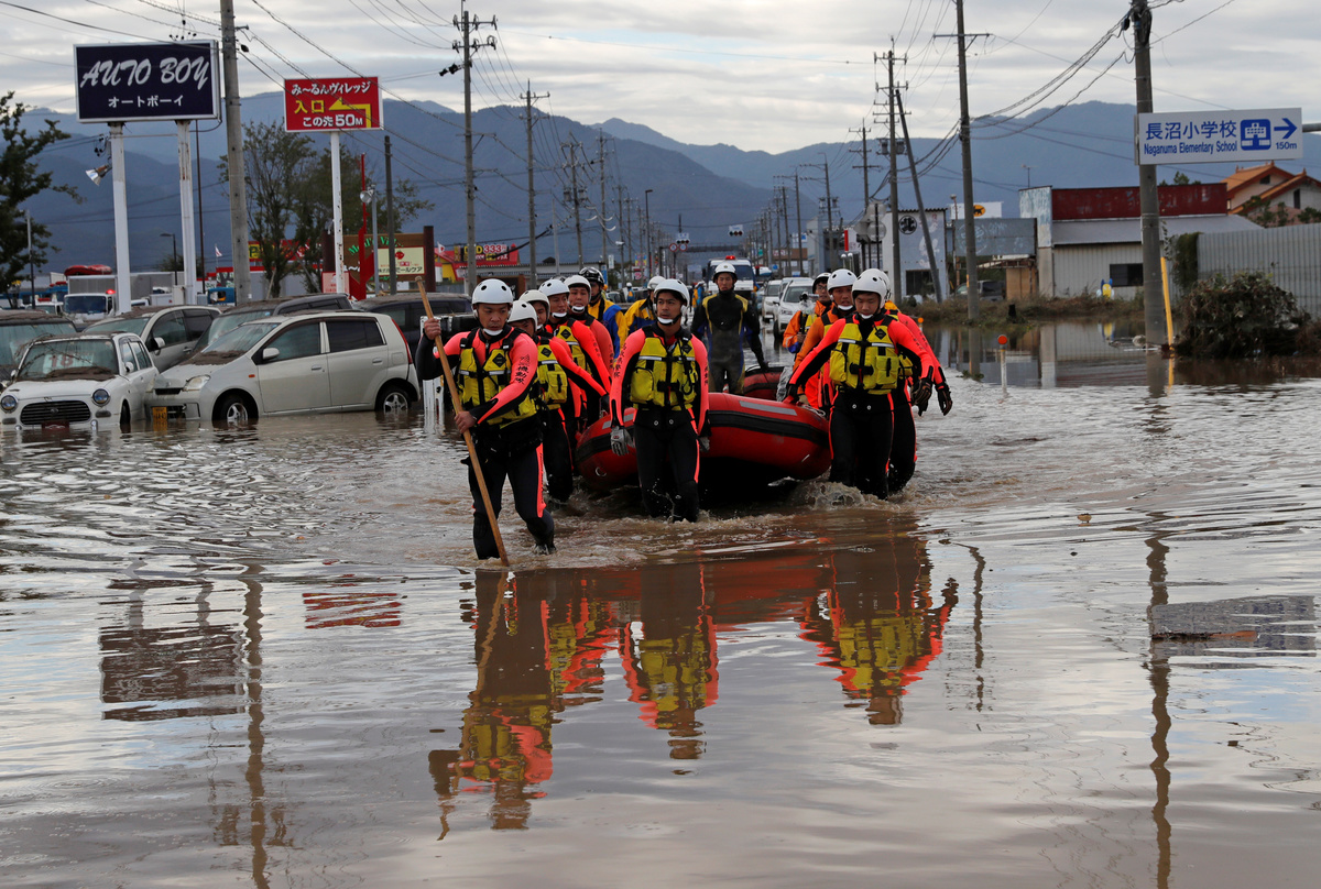 NAGANO, Japan (Reuters) - Rescue workers waded through muddy, waist-high waters on Monday searching for missing people after one of the worst typhoons to hit Japan in recent history, as officials warned of more rain later in the day.