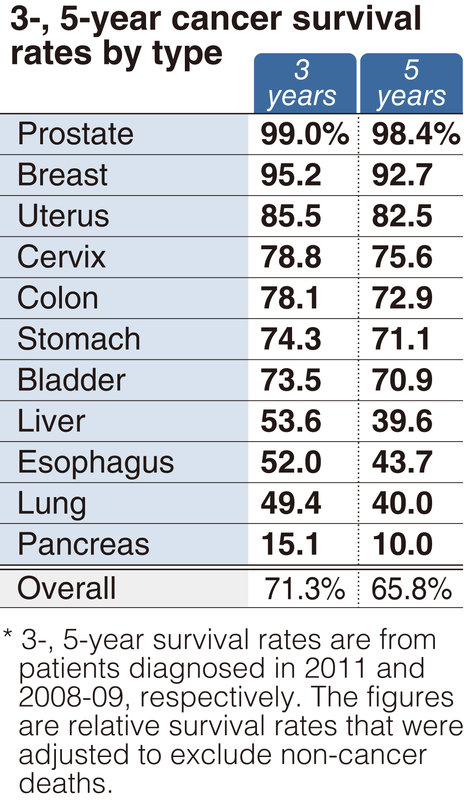 The center released figures on three-year survival rates for the first time on Tuesday. The rate for pancreatic cancer reflects the need for new approaches to difficult-to-treat cancers, such as by developing novel treatments.