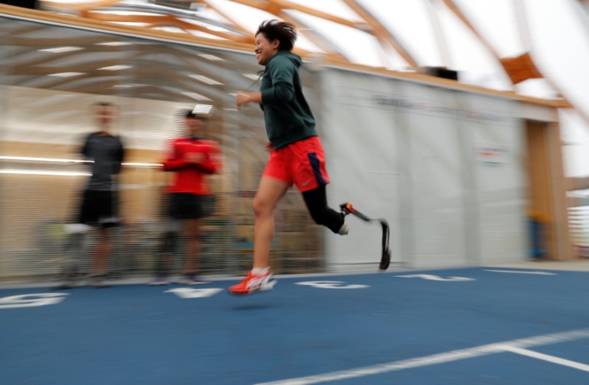 Chie Yamashita, a 20-year-old university student whose left leg was amputated a decade ago after a car accident, played tennis with a regular prosthetic limb because blades were too expensive.