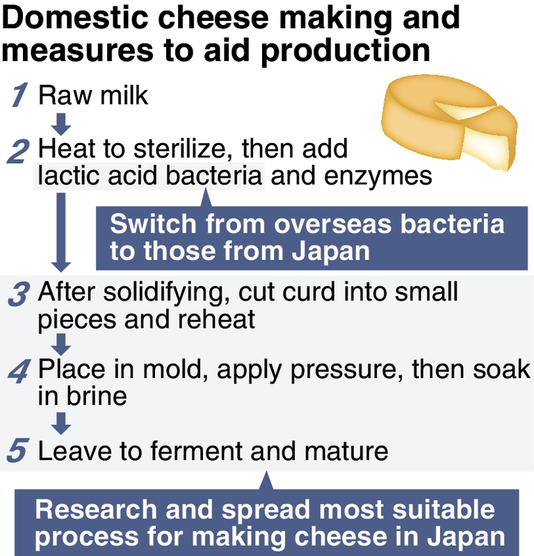 As for lactic acid bacteria, which plays a key role in cheese making, the nation has relied on those from overseas. But the ministry intends to help with research on lactic acid bacteria that are indigenous to Japan. It will also study processing methods suitable to the climate of the country. These efforts are aimed at domestically producing flavorful, aromatic cheese.