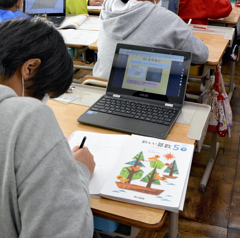 Hiroyuki Matsumoto, principal of the municipal-run school in Inzai, said, "Our children have become able to concentrate on studying, as they are no longer bothered by how to manage their use of desktop space."