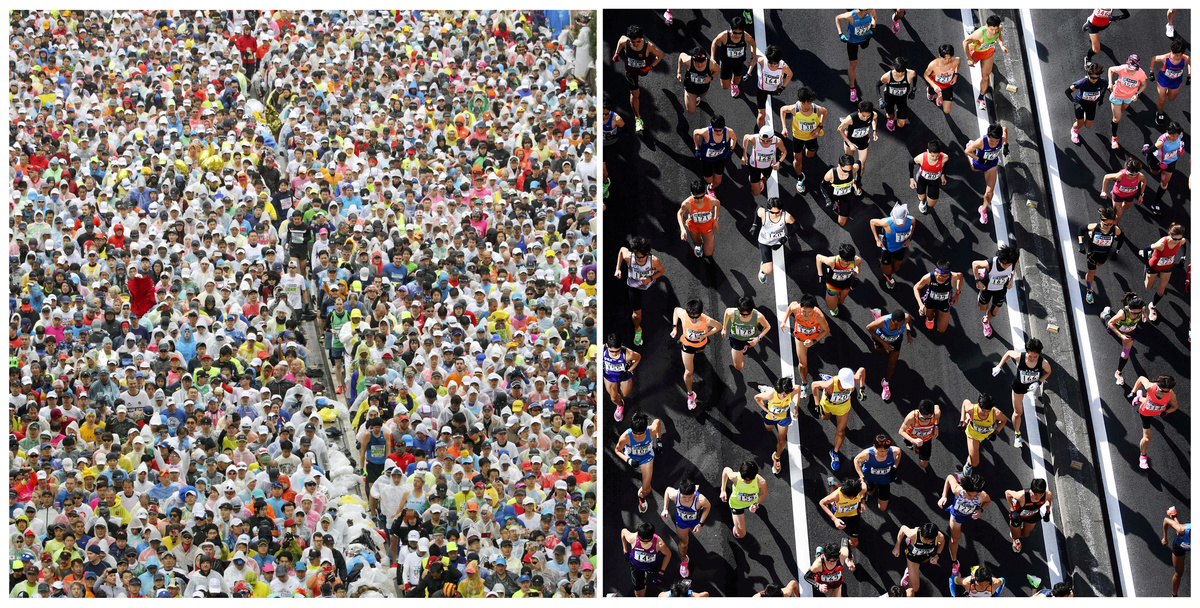 In Tokyo, Sunday's staging of the annual marathon, which last year saw close to 38,000 amateur participants, was scaled back to just a few hundred professional athletes, with the public strongly discouraged from lining the route. In past years the event attracted more than 1 million roadside spectators.