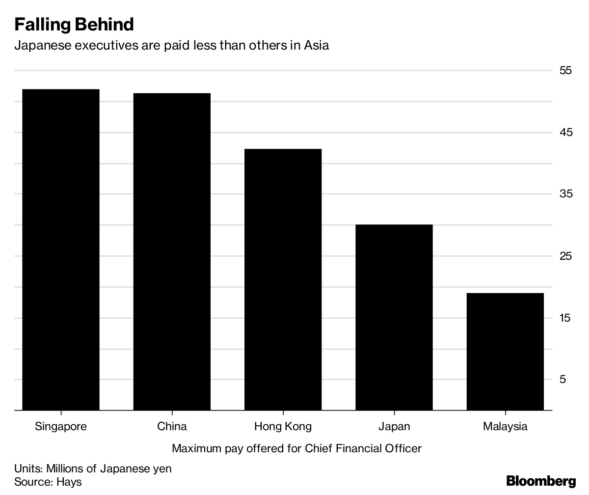 Japanese executives receive lower pay than their counterparts in other parts of Asia, and those seeking to change jobs increasingly cite money as their main motivation, according to studies by a recruitment firm.