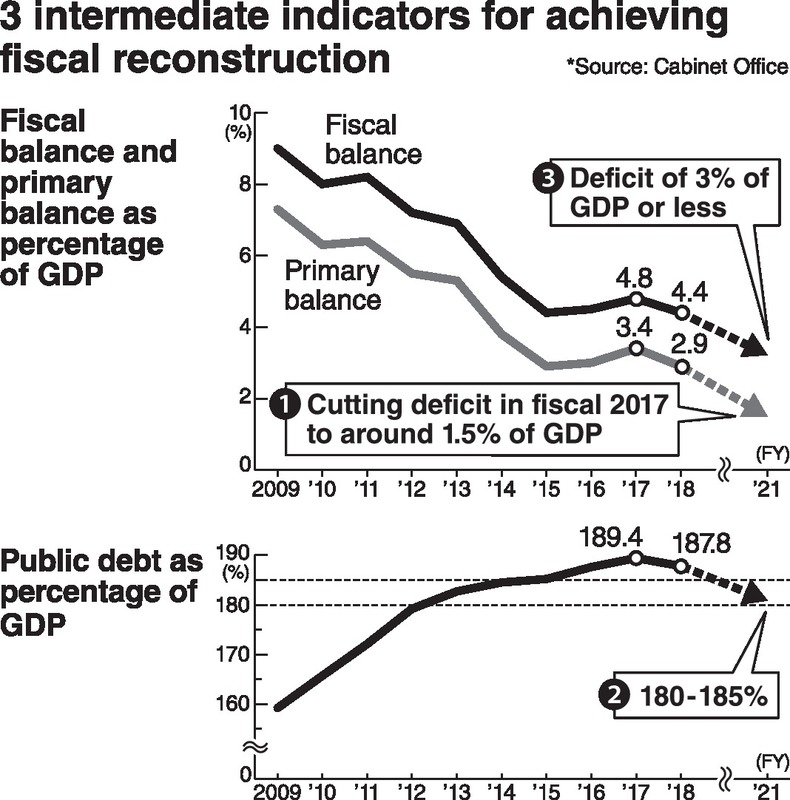 In 2015, the government formulated a plan for achieving fiscal soundness, which set forth an intermediate indicator of cutting the deficit in the primary balance to about 1 percent of GDP by fiscal 2018.