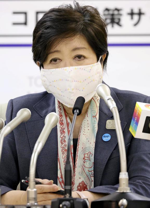 Tokyo Gov. Yuriko Koike on Tuesday evening asked people in the capital to refrain from going out while the state of emergency declaration is in place.