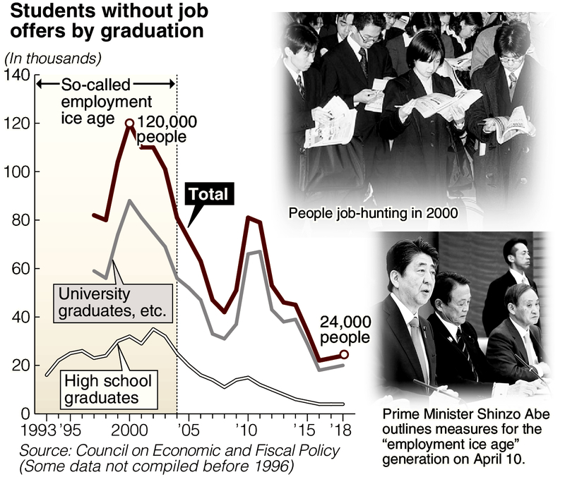 "The issue of the employment ice age generation is not the fault of individuals. It is a policy failure," said Yohei Tsunemi, a lecturer at Chiba University of Commerce who specializes in employment affairs. "The government has shown its willingness to provide support. That should be acknowledged."
