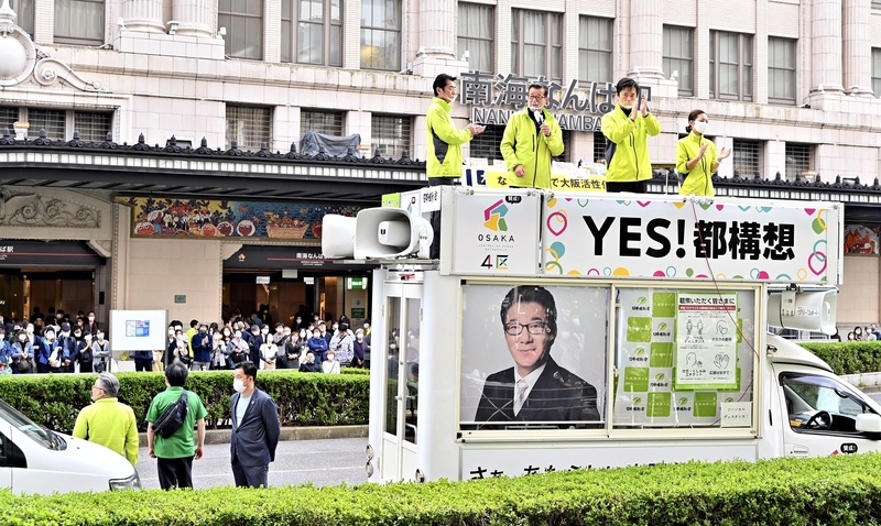 OSAKA -- Five years ago, the Nippon Ishin no Kai (Japan Innovation Party) put an Osaka metropolis plan referendum to voters in the city that was rejected by a slim margin. That loss drove the party's founder, then Osaka Mayor Toru Hashimoto, to retire from politics. Ichiro Matsui, the current head of the party and mayor of Osaka, picked up the mantle but the Osaka metropolis plan was dealt another defeat in Sunday's referendum.