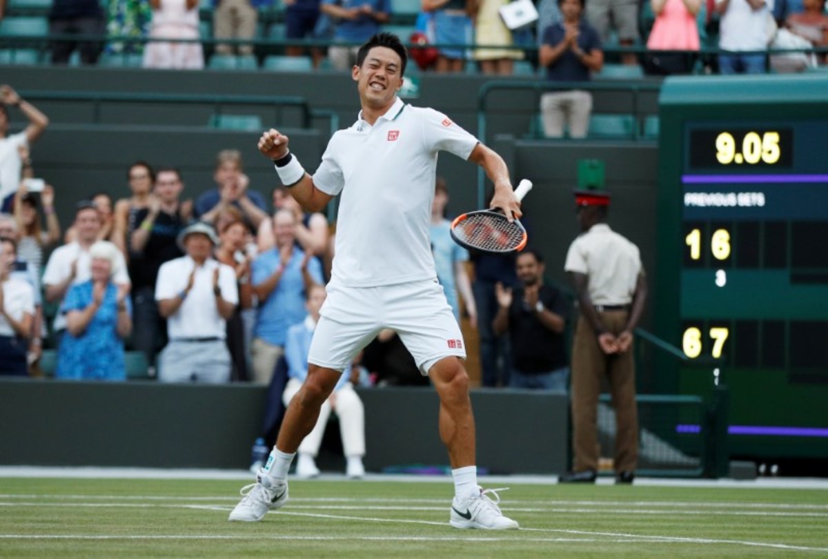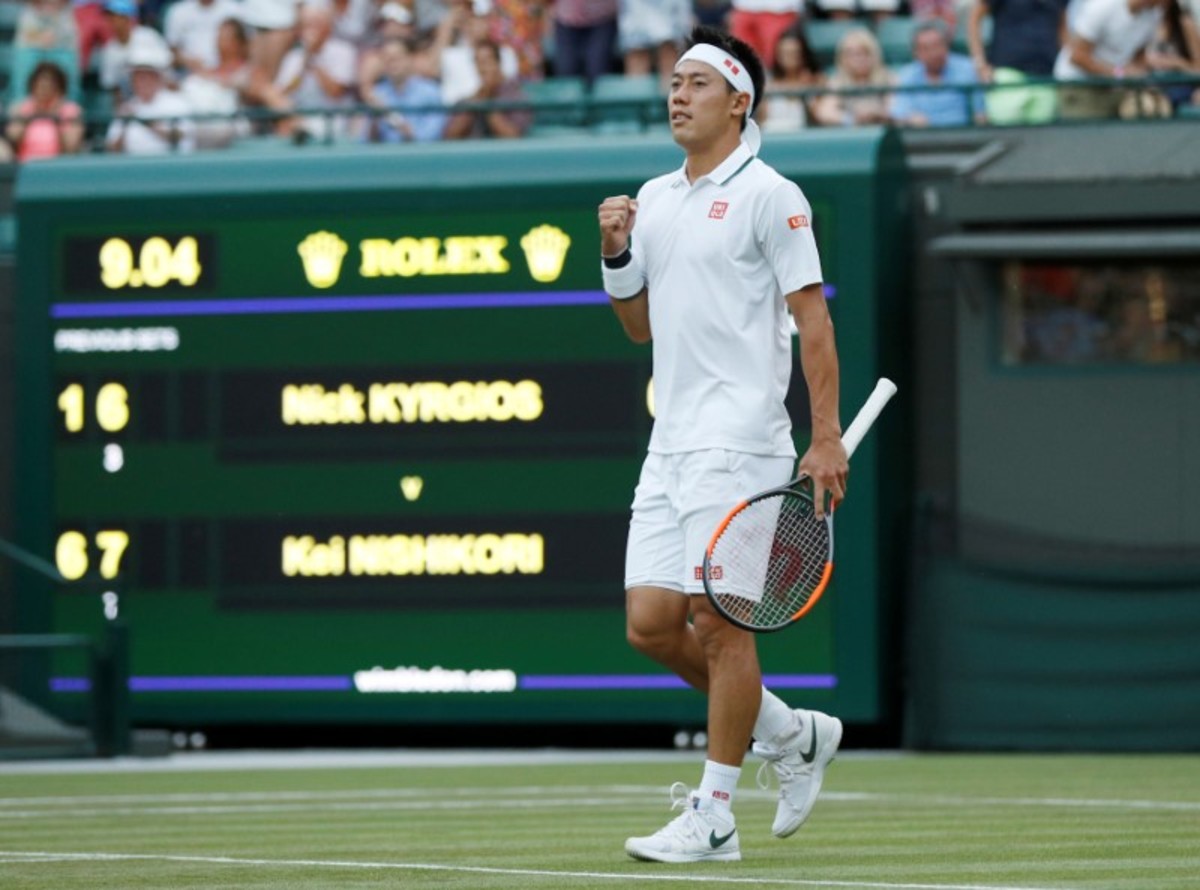 LONDON (Reuters) - Japan's Kei Nishikori equalled his best run at Wimbledon when the number 24 seed reached the fourth round with a 6-1 7-6(3) 6-4 win over Australian Nick Kyrgios on Court One on Saturday.
