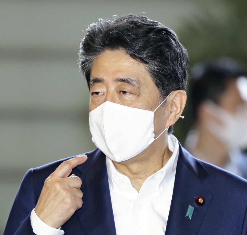 Prime Minister Shinzo Abe was seen wearing a larger mask rather than the smaller one he used to wear, when he went to his office on Monday.
