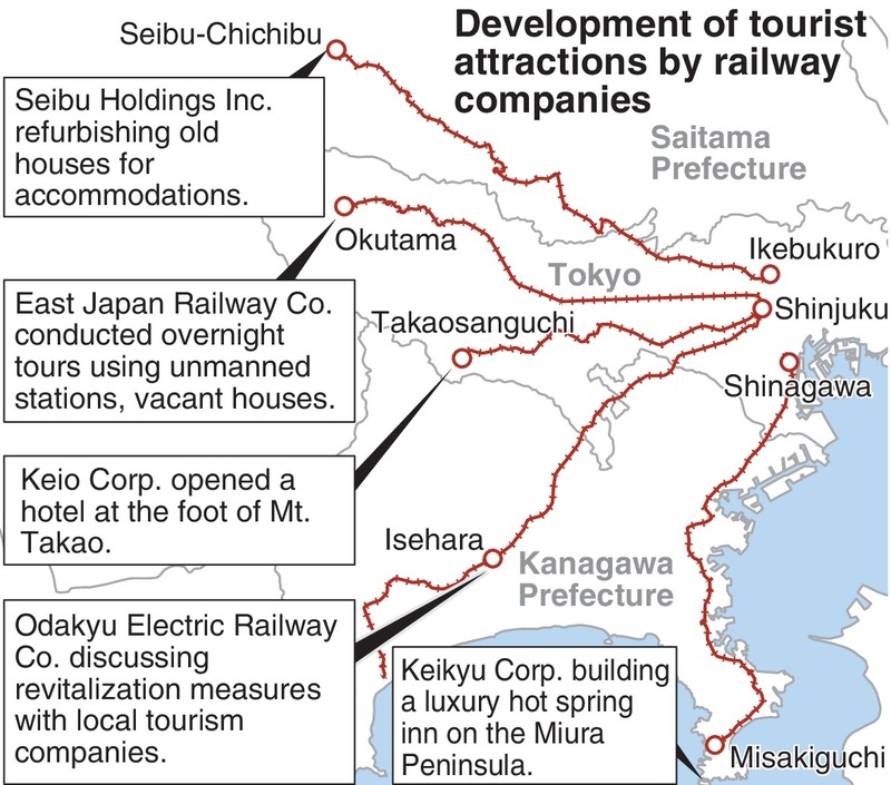 With the number of train passengers down as a result of many people refraining from traveling amid the pandemic, railway companies are stepping up their efforts to develop tourist spots within about one hour of central Tokyo.