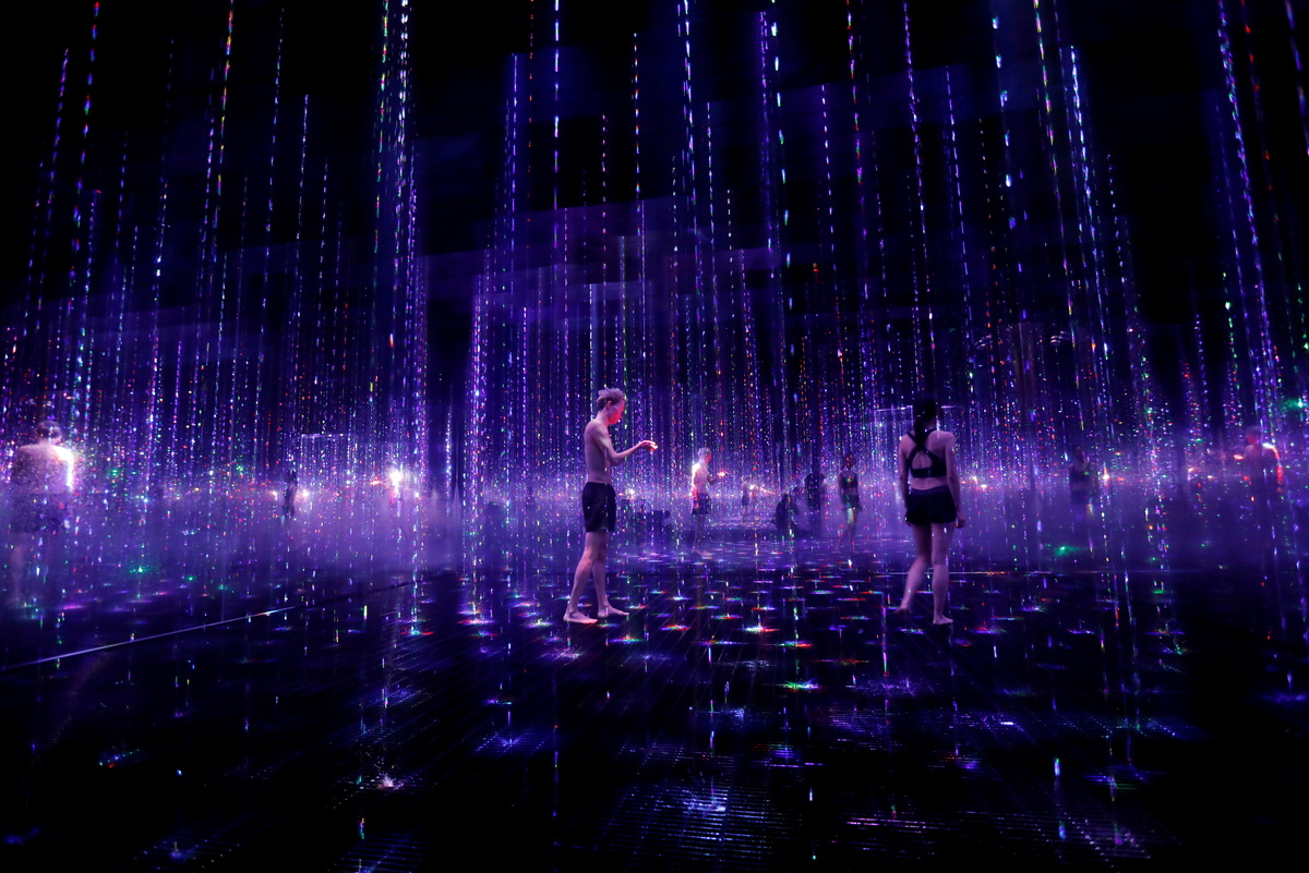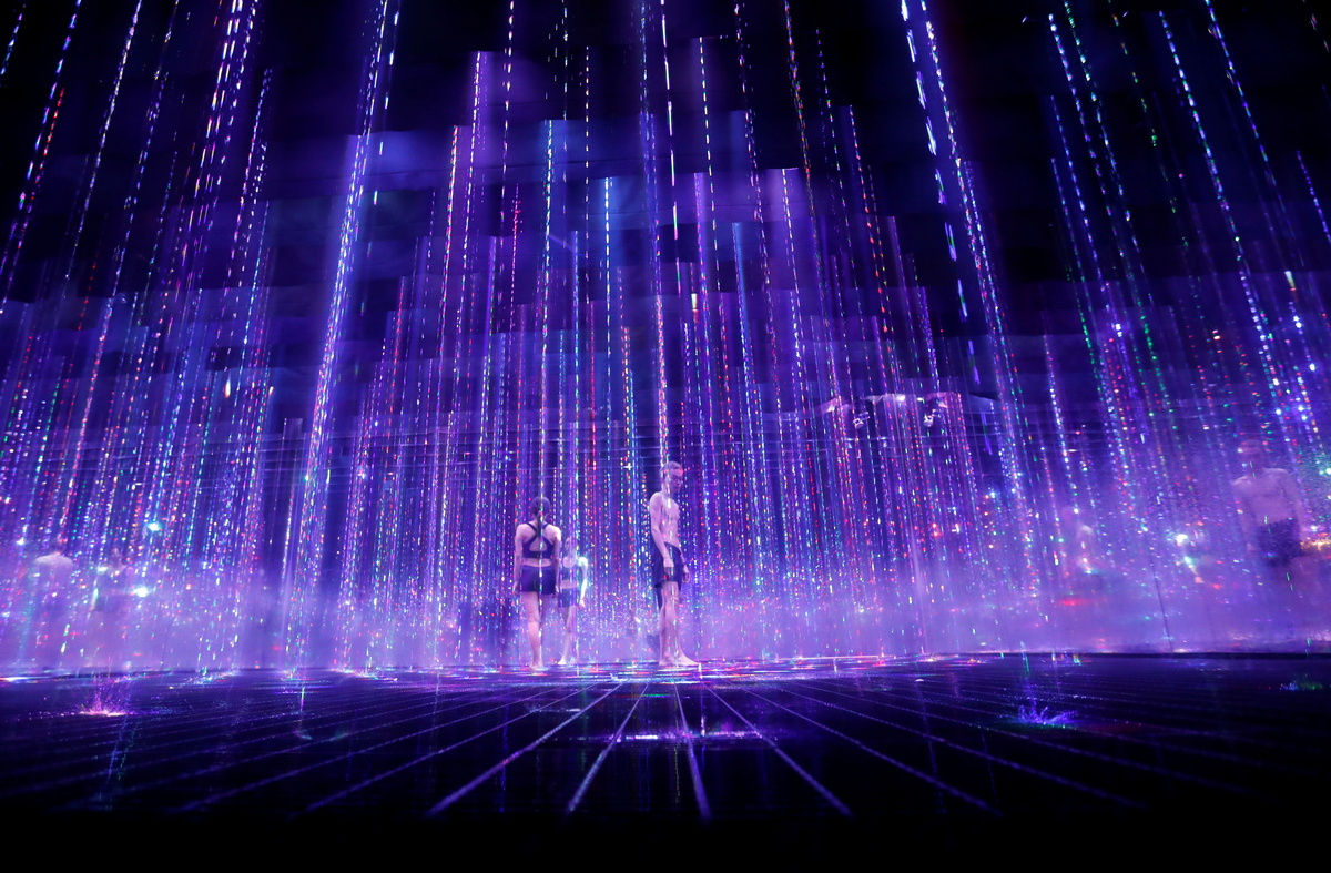 "TikTok teamLab Reconnect" runs March 22 until the end of August. For $44 on weekdays and $53 on weekends, visitors can dip in and out of the hot rooms and cold showers, and walk inside the artworks sporting only swimming suits.