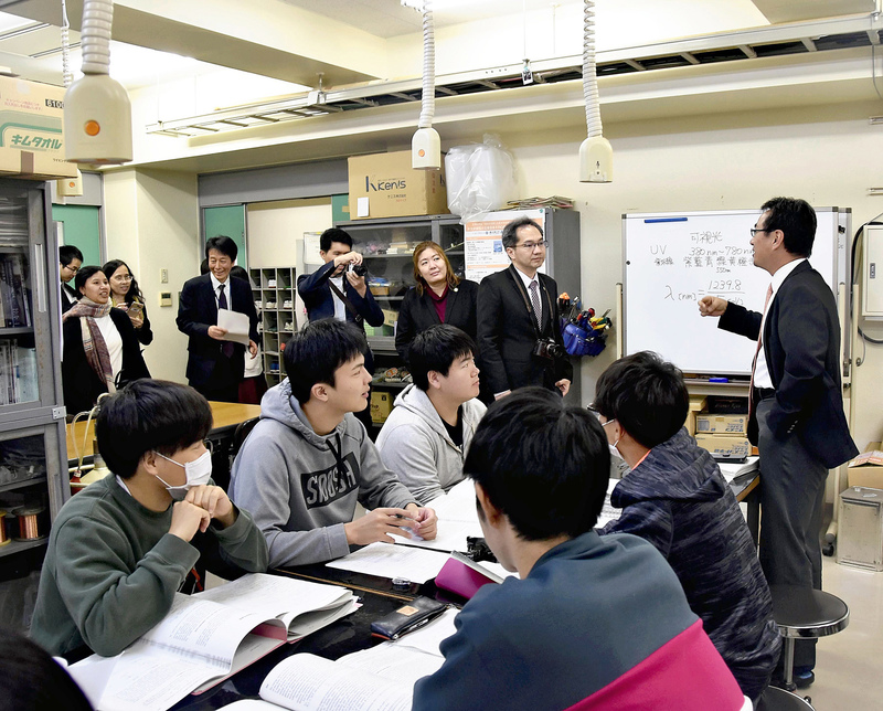 At a mechanical engineering laboratory, the representatives observed practical training in which students learned how to develop a drone for use in disaster control. At the department of information and computer engineering, they also looked at a robot designed to prevent damage from crows.