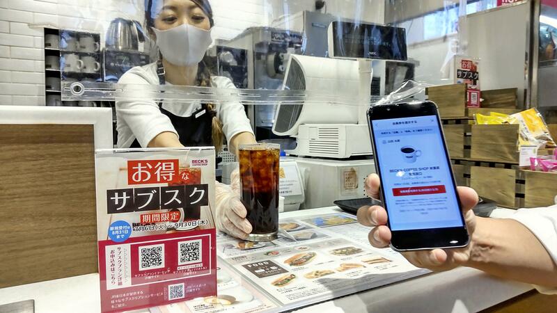 By purchasing a ticket online costing 2,500 yen per month, subscribers can receive up to three free cups of coffee per day at Beck's Coffee Shop at the three stations.