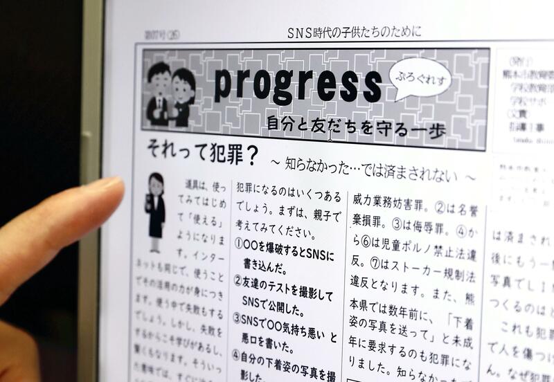 The Kumamoto municipal board of education is regularly producing materials containing suggestions for students and their parents for the students' use of smartphones.