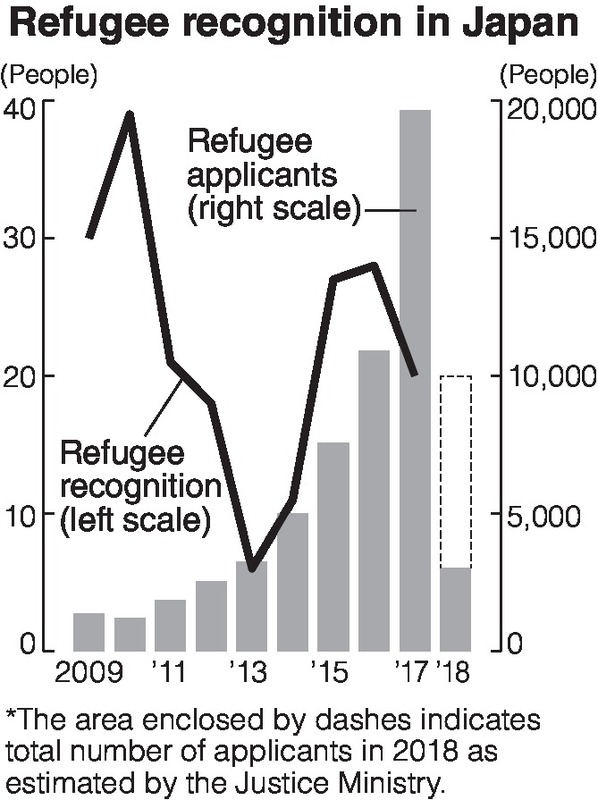 Starting this year, the Justice Ministry has greatly restricted the employment of people who have filed applications for refugee status. This is meant to prevent false applications that aim to only obtain permission to work in Japan. It is believed the ministry's restriction has been working well to decrease the number of applicants for refugee status.