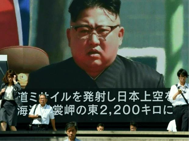 NHK’s 6.55pm alert said: “North Korea appears to have launched a missile ... The government urges people to take shelter inside buildings or underground.”