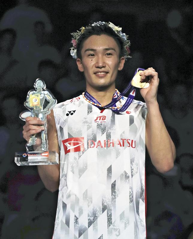 NANJING, China -- Japan took two gold medals in the badminton world championships on Sunday after winning men's singles and women's doubles.
