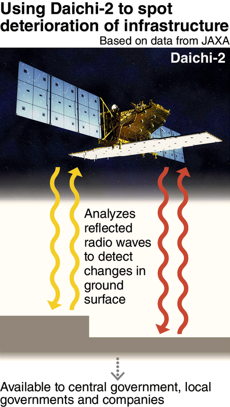 The Japan Aerospace Exploration Agency (JAXA) has developed a system to efficiently monitor the deterioration of infrastructure -- such as river embankments, airports and harbors -- using the Advanced Land Observing Satellite Daichi-2.