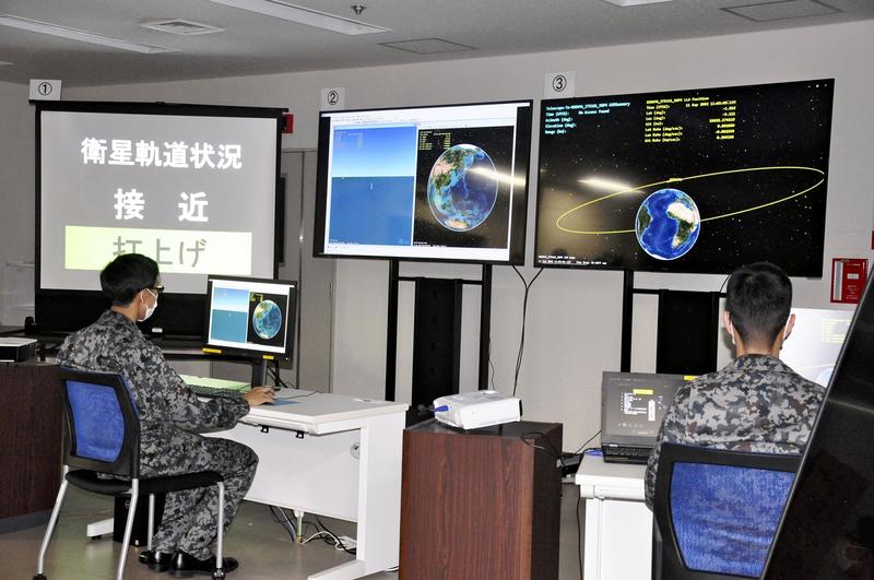 The unit is tasked mainly with monitoring other countries' satellites and space debris that could collide with satellites. During the training drill, the team visualized and analyzed satellite orbits based on data provided by the U.S. military.