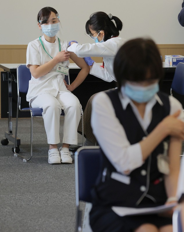 Japan launched its first vaccinations against the novel coronavirus on Wednesday, beginning at 9 a.m. at the National Hospital Organization's Tokyo Medical Center in Meguro Ward, Tokyo.