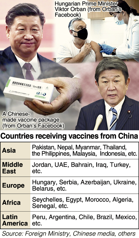 China is said to be supplying vaccines to as many as 80 nations in Asia, South America, Africa, and Europe -- mainly to developing countries that are unable to procure high-priced vaccines such as those made by Pfizer Inc. of the United States.