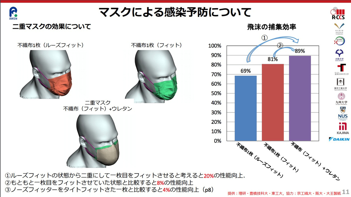 Japanese supercomputer simulations showed that wearing two masks gave limited benefit in blocking viral spread compared with one properly fitted mask.