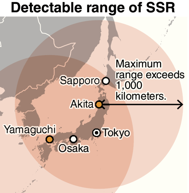 The maximum detectable range of SSR is far more than 1,000 kilometers, more than double the range of the SPY1 radar currently installed on an Aegis-equipped destroyer of the Maritime Self-Defense Force.