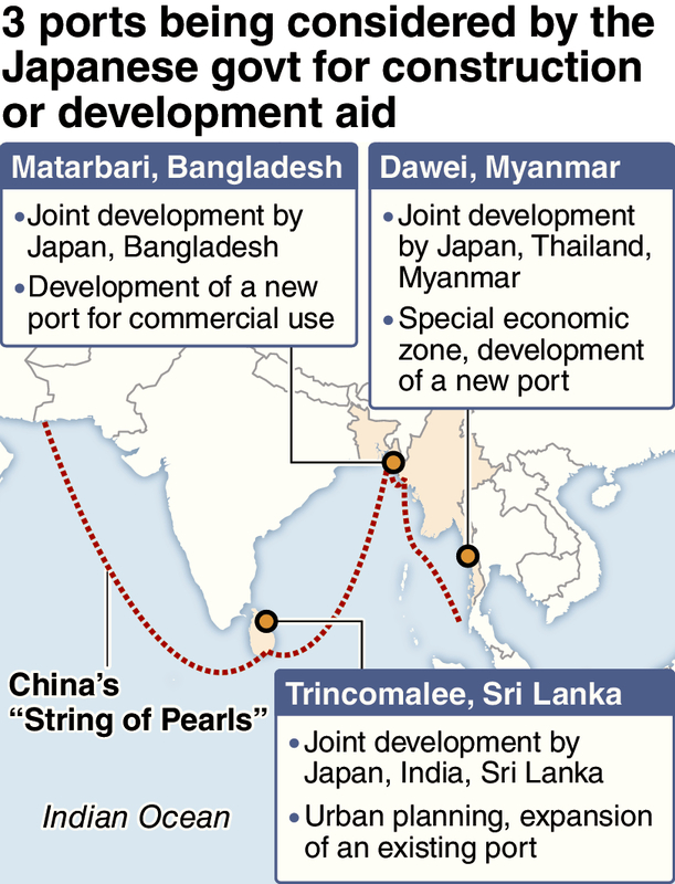 It is said that China had also sought the construction of new ports around Dawei and Matarbari, but failed to make progress because of Japanese plans.