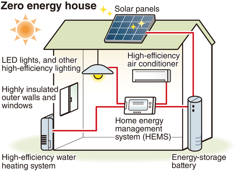 Houses combining energy-saving and energy-generating facilities, such as solar power generation, to achieve a zero-net energy balance are increasingly gaining attention. Net zero energy houses (sometimes abbreviated as ZEH) are often environment- and budget-friendly, and because of their ability to maintain a fairly constant internal temperature, they are also expected to have positive health effects. The central government is promoting the spread of zero-energy homes, citing that they will help reduce greenhouse gas emissions and enable self-supply of electricity during disasters.
