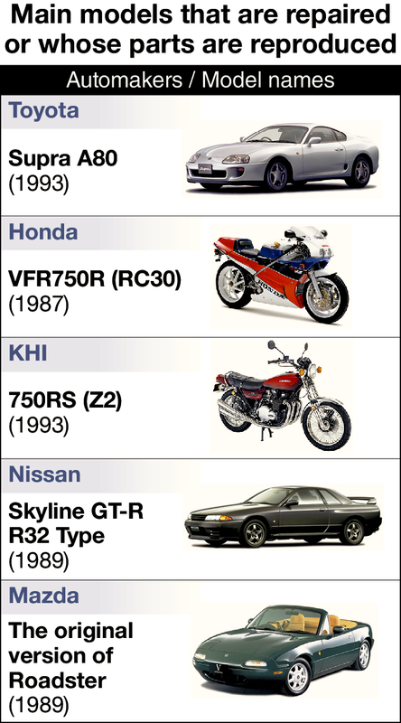 Some of the most popular automobiles and motorcycles of yesteryear will be getting new life as major Japanese manufacturers such as Toyota Motor Corp. and Honda Motor Co. have begun full-fledged servicing of these classic vehicles.