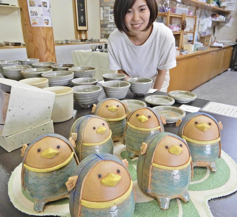 AKI, Kochi -- Ayumi Nakamura, a ceramic artist in Aki, Kochi Prefecture, has created ornamental figures of Amabie, a legendary yokai (supernatural being) said to ward off plagues in the hope that they will bring peace of mind to those taking great care to avoid novel coronavirus infection.