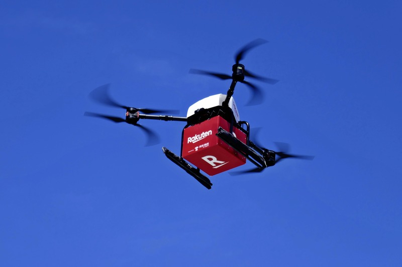 E-commerce company Rakuten, Inc. and supermarket chain Seiyu GK announced on Monday that they will offer a delivery service using drones, or small unmanned aircraft. The Seiyu store in Yokosuka, Kanagawa Prefecture, will transport food to visitors on Sarushima island, an uninhabited island in Tokyo Bay about 1.5 kilometers from the store. The service will run on Thursday, Friday and Saturday for about three months from July 4.