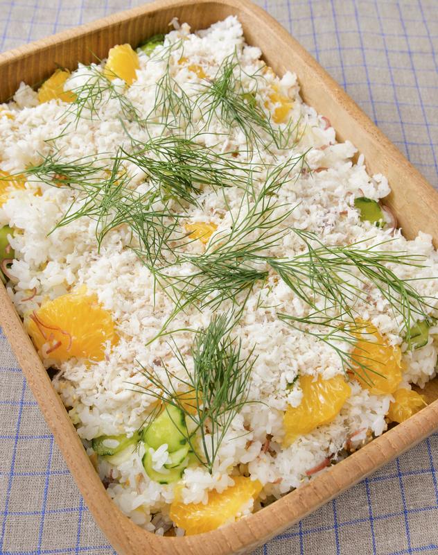 Sea bream has been used for dishes for celebratory occasions in Japan since ancient times. Cooking expert Hitomi Tsutsumi describes how to make a rather sumptuous chirashi-zushi (vinegared rice topped or mixed with seafood and other ingredients) featuring the fish, generally known as tai in Japan. The combination of seasonal amanatsu citrus fruit, fresh dill and the fish is surprisingly tasty.